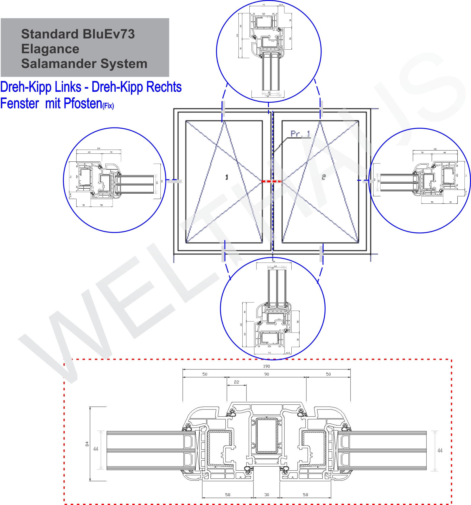 WeltHaus Window Standard 73 - Salamander BluEvolution 73